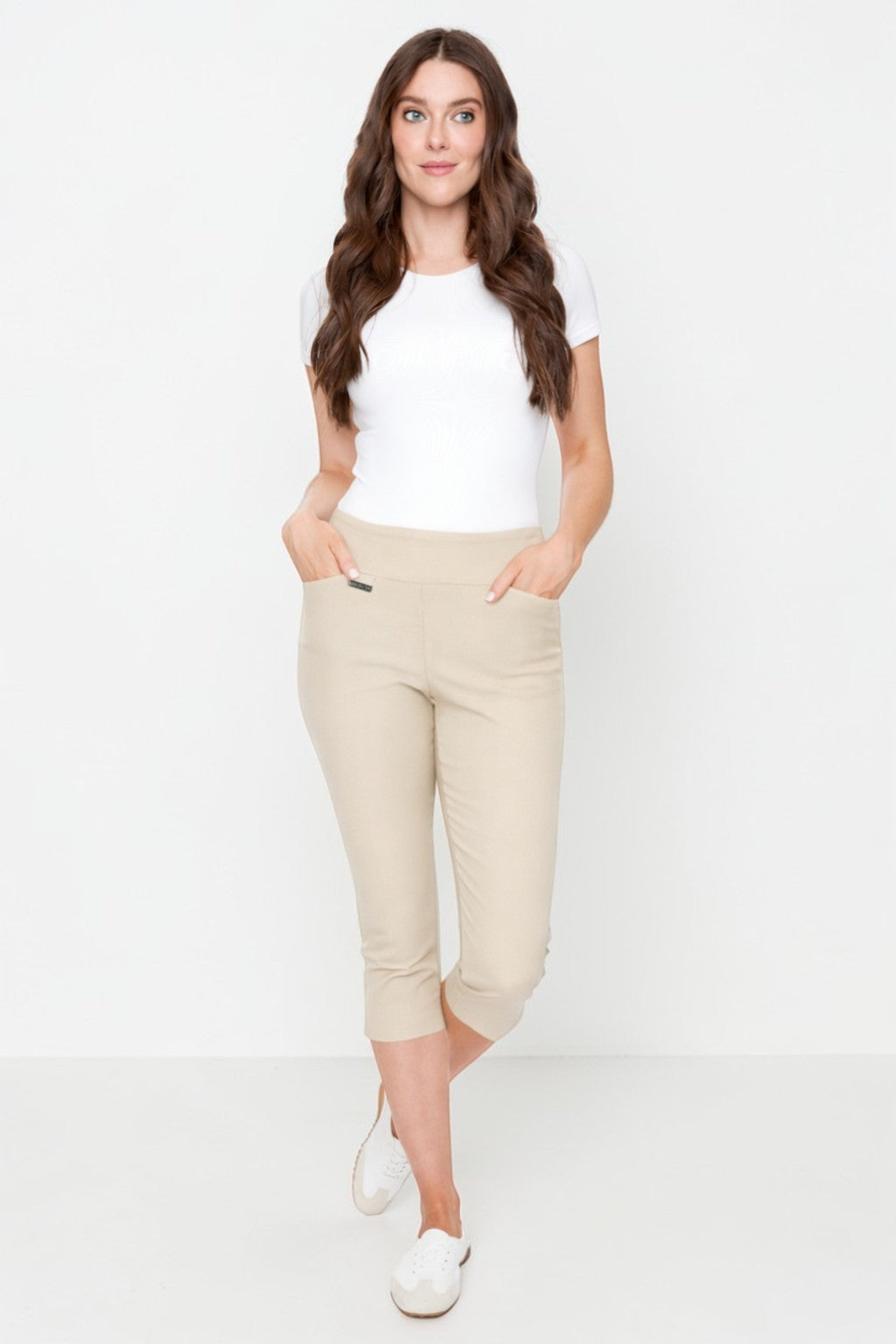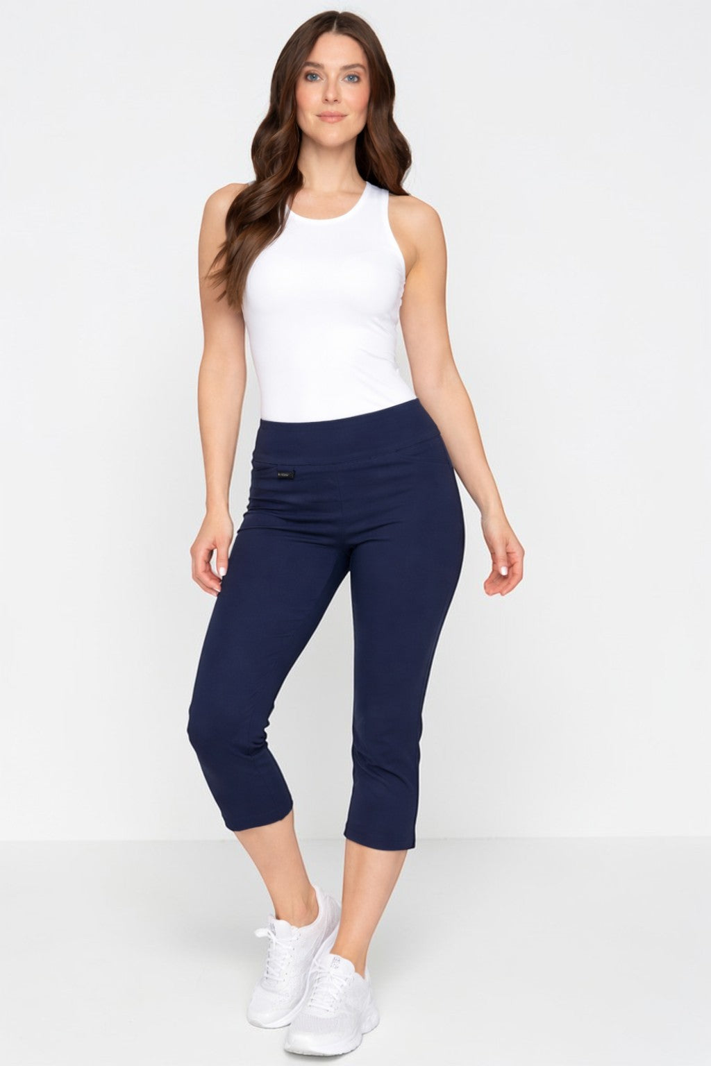Experience the perfect mix of comfort and style with our Dream Capris Pull-On Pants, featuring a 21" inseam ideal for a polished, flattering look. These capris come with two front pockets and a tummy control waistband with a medium rise, offering a smooth silhouette and all-day comfort. Made from our soft, stretchy millennium fabric blend of viscose, nylon, and elastane, they move effortlessly with you. Proudly made in Canada, these versatile capris are perfect for golf or casual wear, effortlessly elevating your outfit from the course to everyday activities.