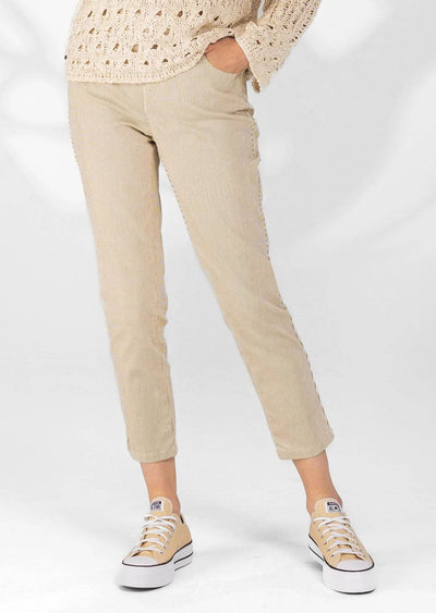 Experience effortless elegance in our Dunnet Stripe Ankle Pants, featuring a timeless striped design and a comfortable elastic waistband with convenient front pockets. Expertly crafted with luxury fabrics for the ultimate premium experience.