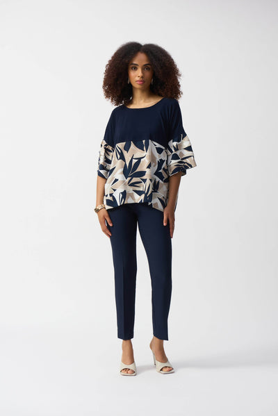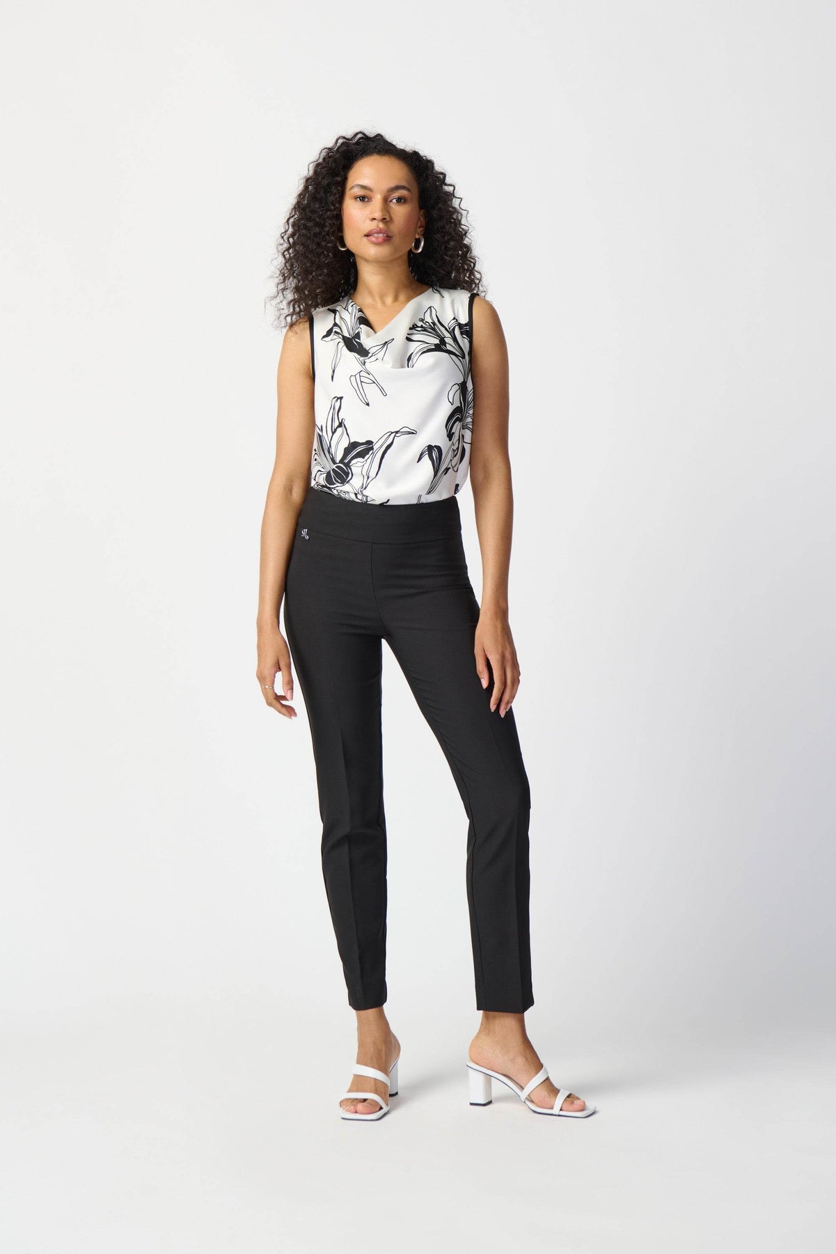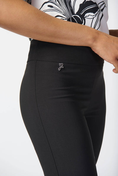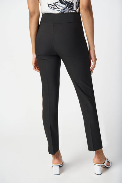 Enhance your wardrobe with our exquisite twill slim-fit pants, featuring a structured contour waistband and the Joseph Ribkoff tab ornament that exemplifies unparalleled quality and craftsmanship. These pull-on pants guarantee incredible comfort and elegance to elevate your style.