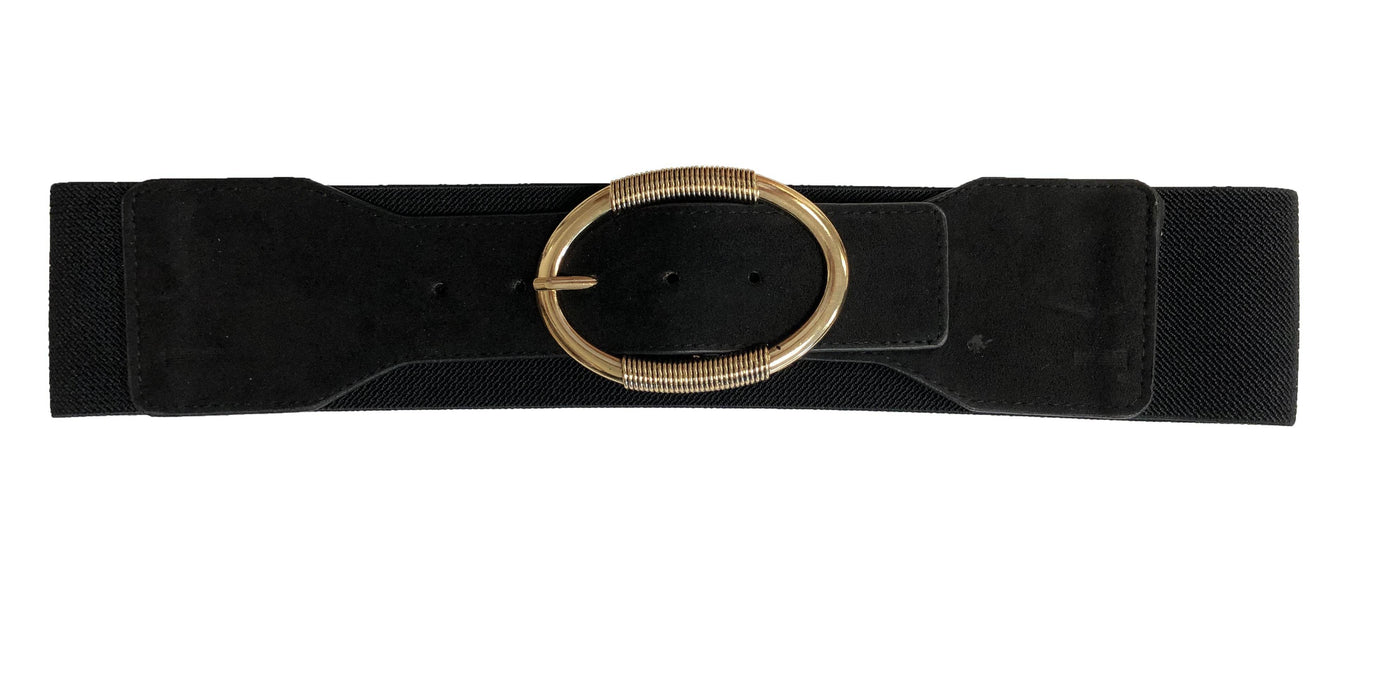 Elevate any ensemble with this chic high fashion belt that showcases a gorgeous gold oval shaped buckle. Take your look from basic to excellent with this stylish accessory.