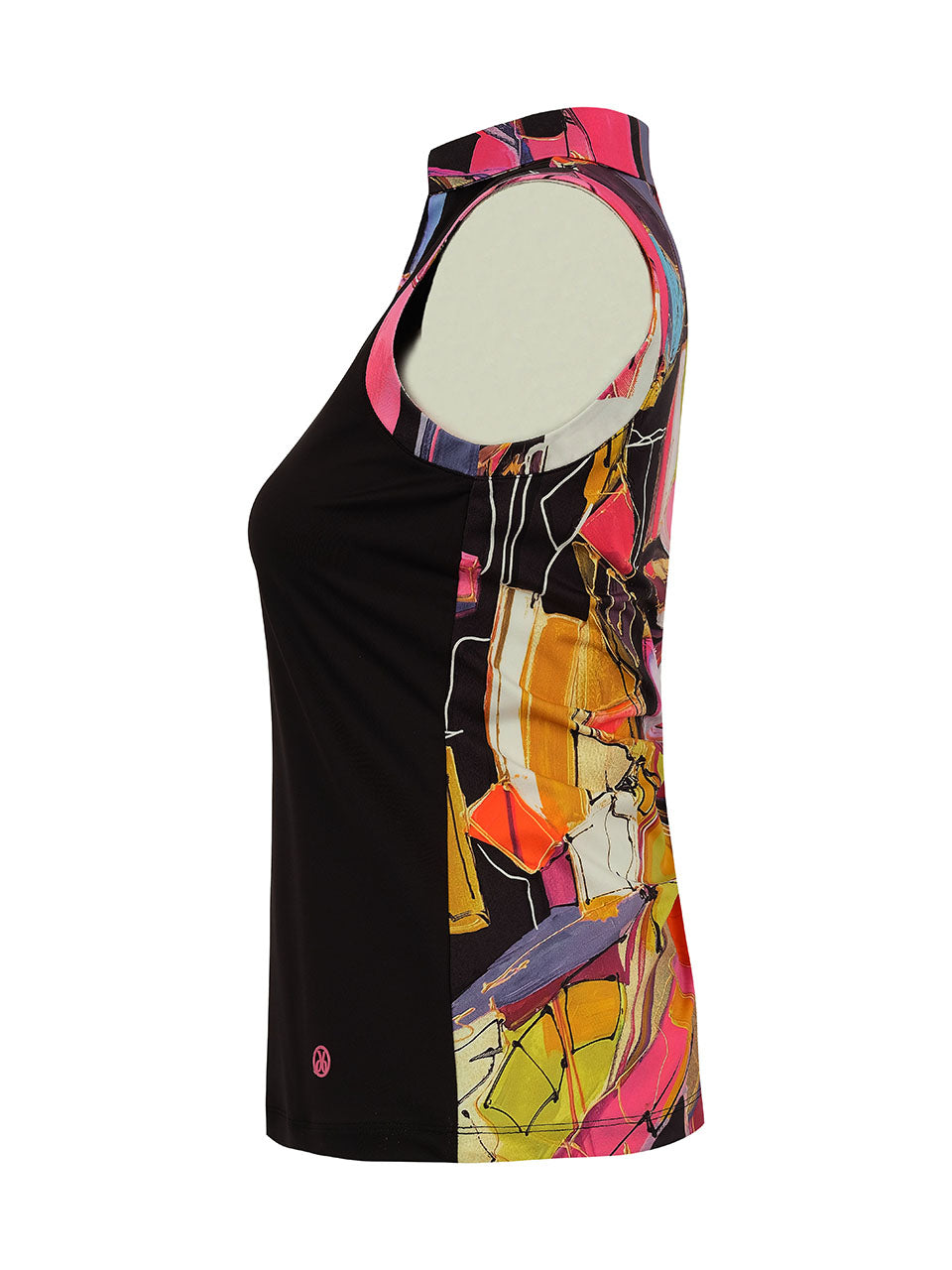A vibrant golf skort inspired by expressive abstract art and bold color. The Chromatic Muse print features striking geometric brushstrokes in vivid shades of pink, coral, orange, and gold, creating a dynamic, gallery-inspired look on the course. Designed with a comfortable pull-on waistband and performance stretch fabric, this skort offers ease of movement and all-day comfort. Perfect for pairing with solid polos or coordinating pieces, it brings confident style and artistic energy to every round.