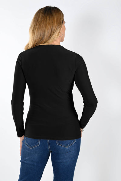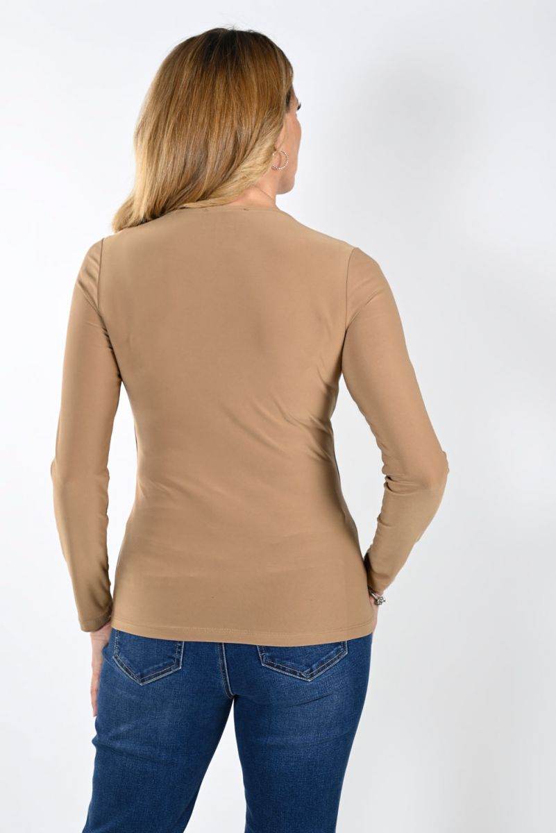 This knit top with long sleeves exudes a sophisticated elegance while the open chest design offers a captivating touch. Its versatility provides the ideal autumn outfit, whether one is looking to dress up for a special event or keep it casual.- 95% Polyester 5% Elastane