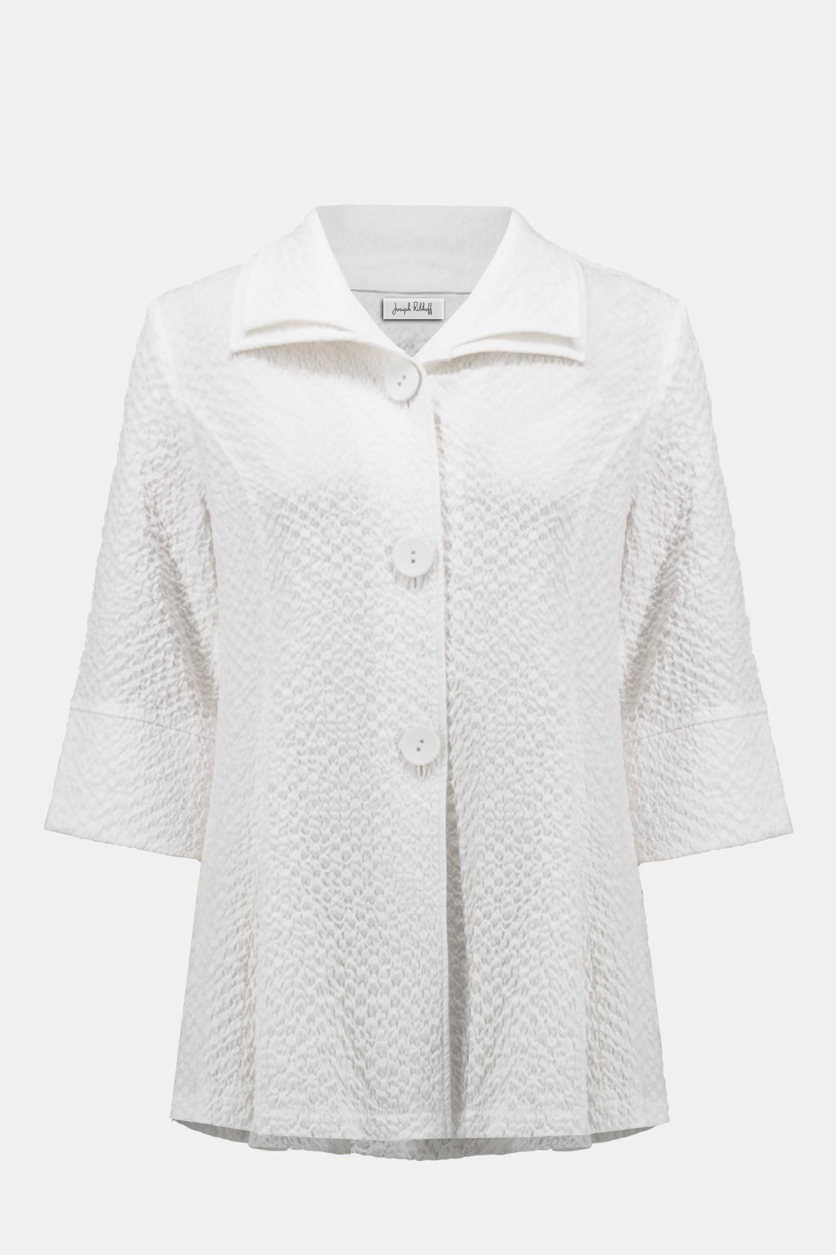 Elevate your wardrobe with this striking seersucker jacket. Its distinctive double collar, flared panels, and three-quarter cuffed sleeves create an effortlessly polished look that stands out from the ordinary.