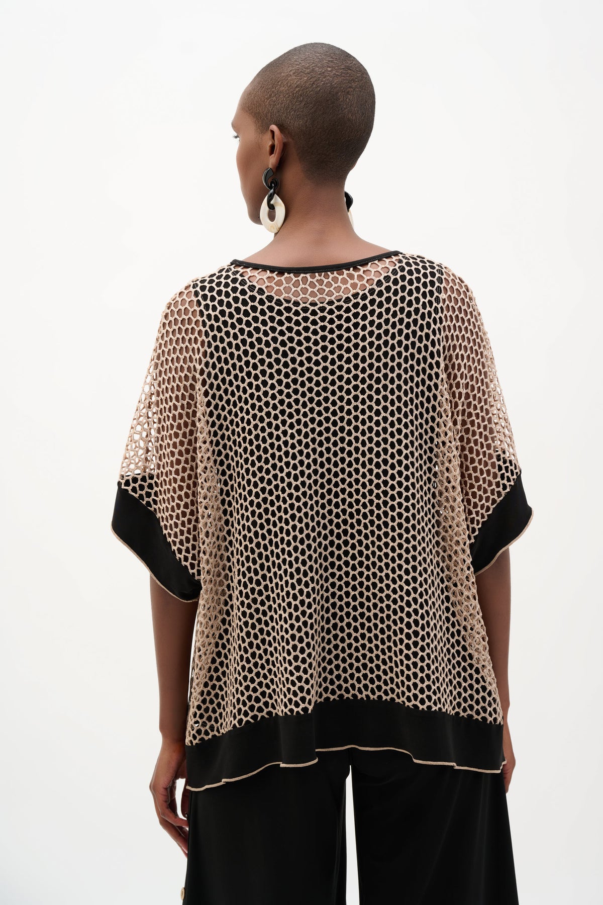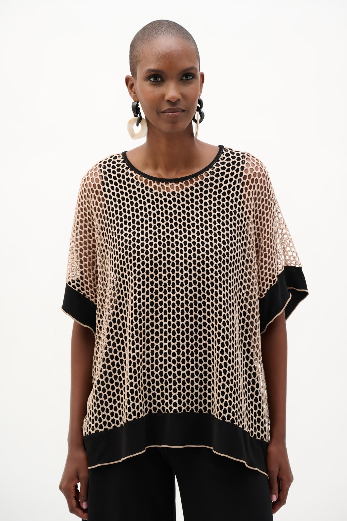 Silky Knit And Mesh Trapeze Top With Contrast Cuffs Joseph Ribkoff