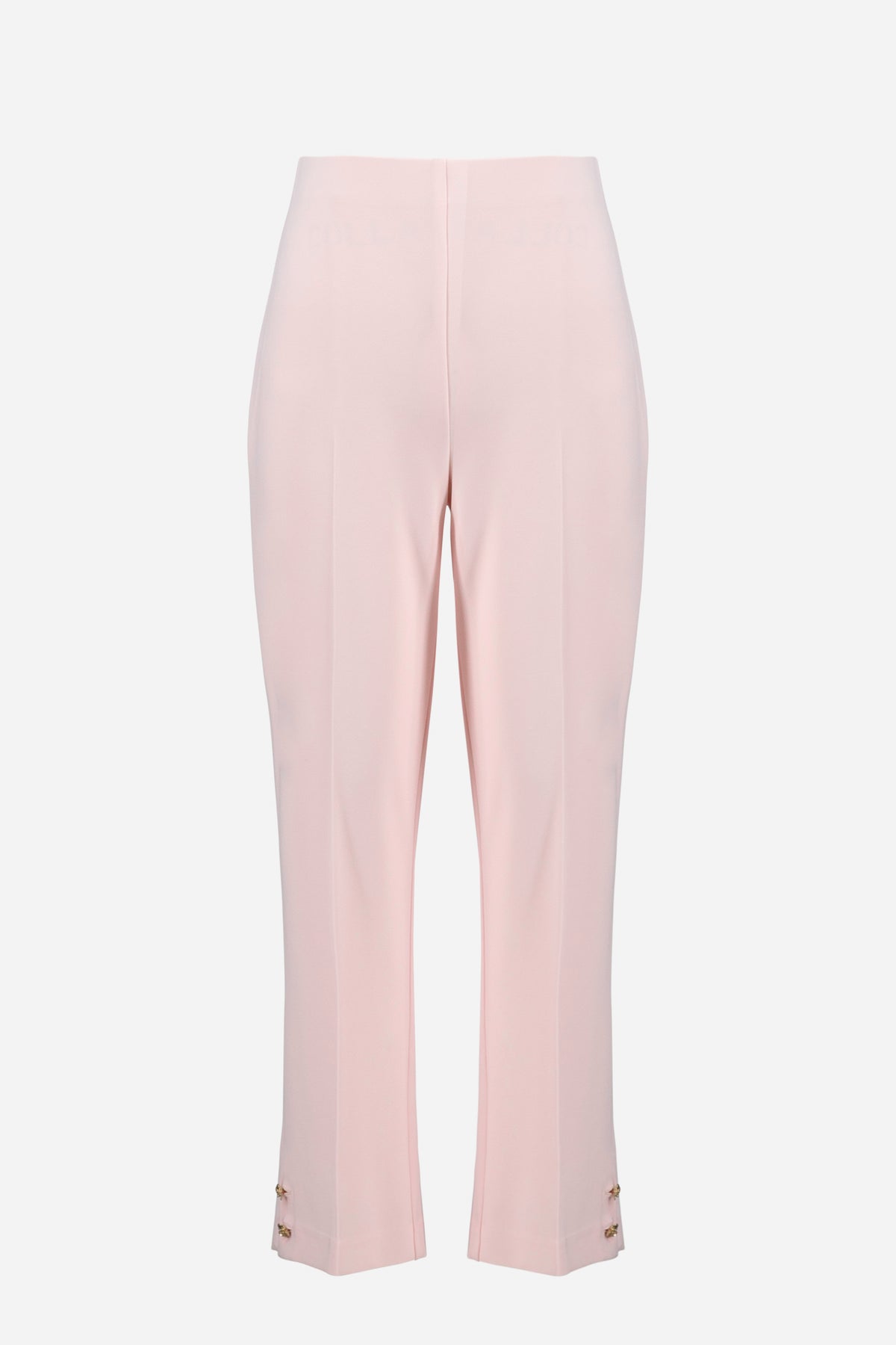 Elevate your everyday style with these cropped silky knit pants that shimmer with every movement. The flattering bootcut silhouette creates a polished line, while luxe gold rose buttons adorning the side seams add an unexpected touch of sophistication. Designed to pair seamlessly with the Silky Knit Fitted Blazer With Statement Button (261245), these pull-on pants deliver effortless elegance without compromising on comfort or visual impact.