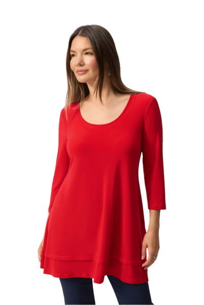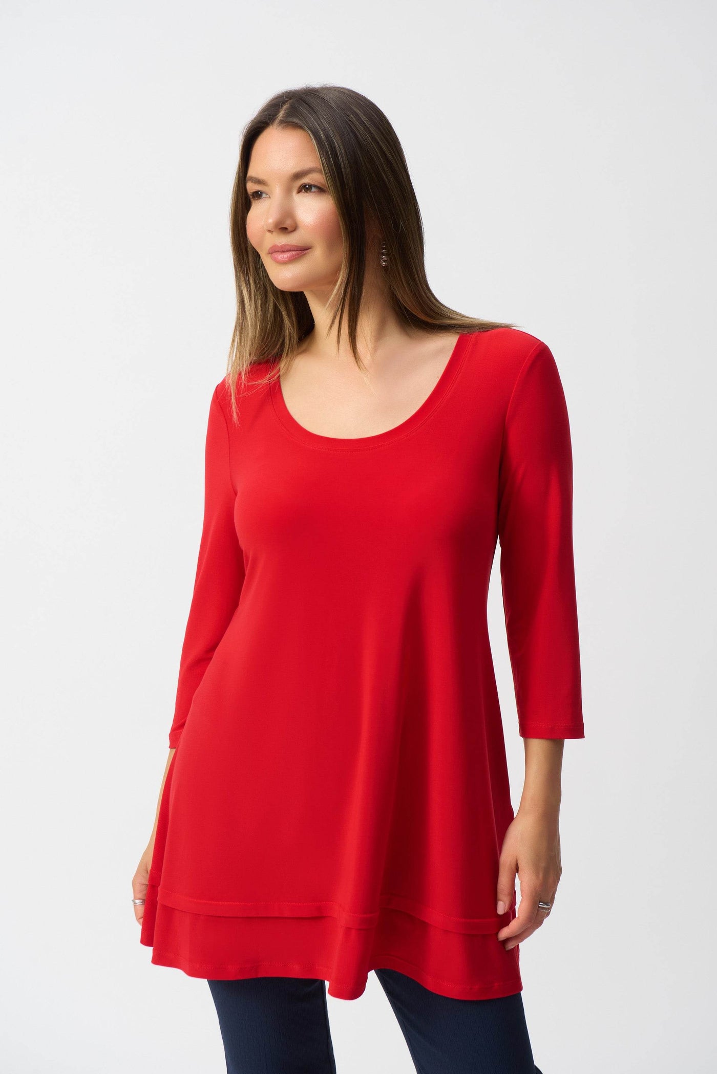 Featuring a scoop neck and three-quarter sleeves, this stylish tunic boasts a lightweight, flowing silhouette that sets it apart from the ordinary. Made from a soft and stretchy silky knit, it's perfect for staying cool and comfortable in the summer season.