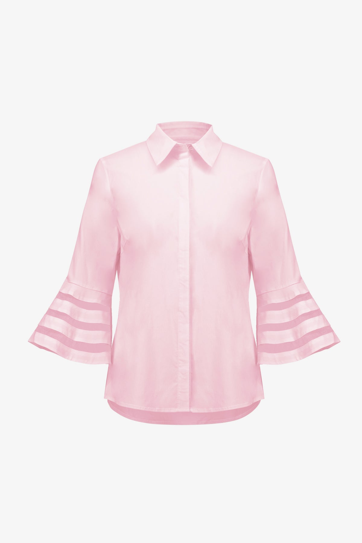 Effortless elegance meets everyday comfort in this stretch blouse. The flattering straight fit and dramatic organza bell sleeves create a sophisticated silhouette that transitions seamlessly from office to evening. Breathable fabric moves with you, while the refined crewneck keeps the look polished and timeless.