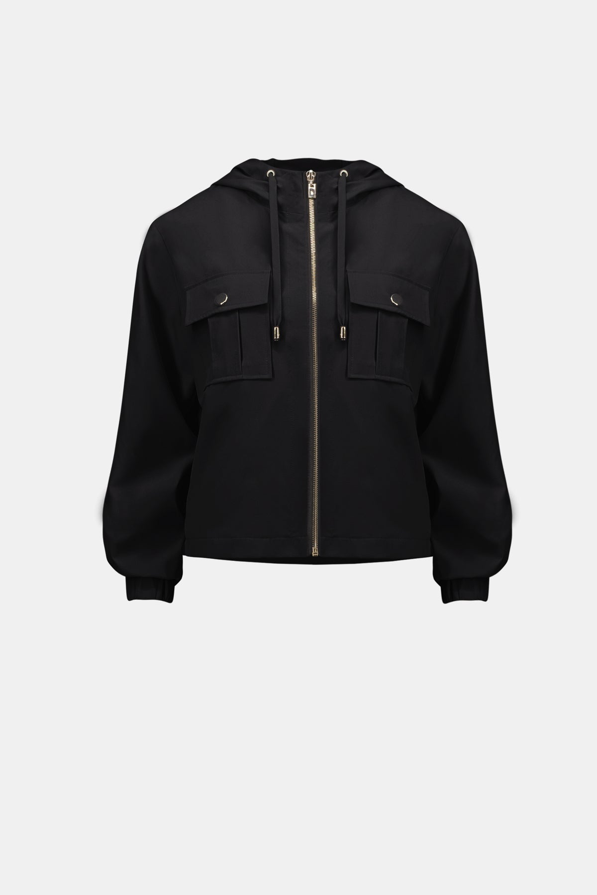 This boxy hooded jacket combines stretch woven fabric with a relaxed silhouette that works beautifully as a layering piece. The unlined construction and cuffed long sleeves offer breathable comfort, while the utility-inspired design makes it an effortless choice for your everyday wardrobe.