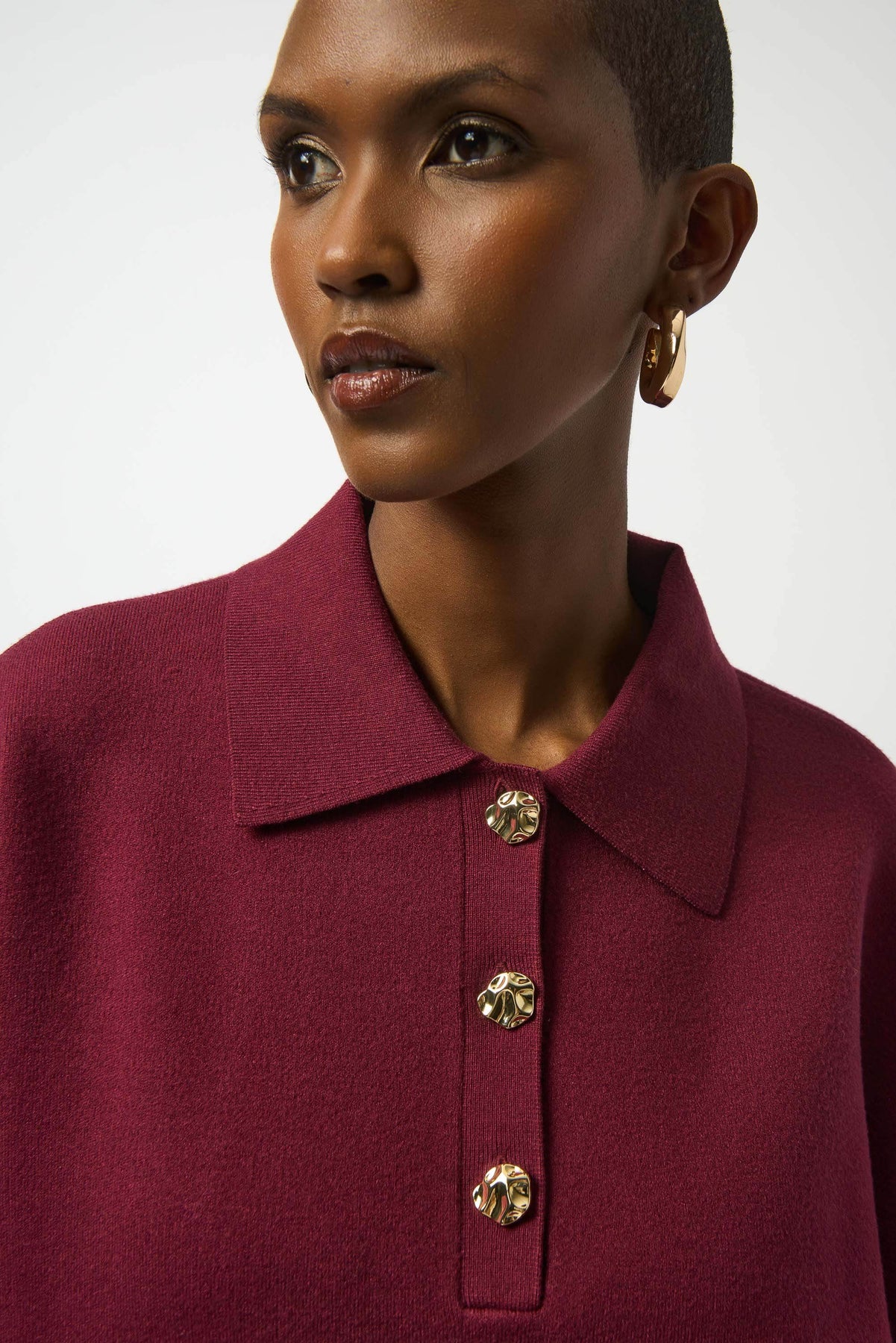Product: Sweater Knit Boxy Pullover With Polo Collar