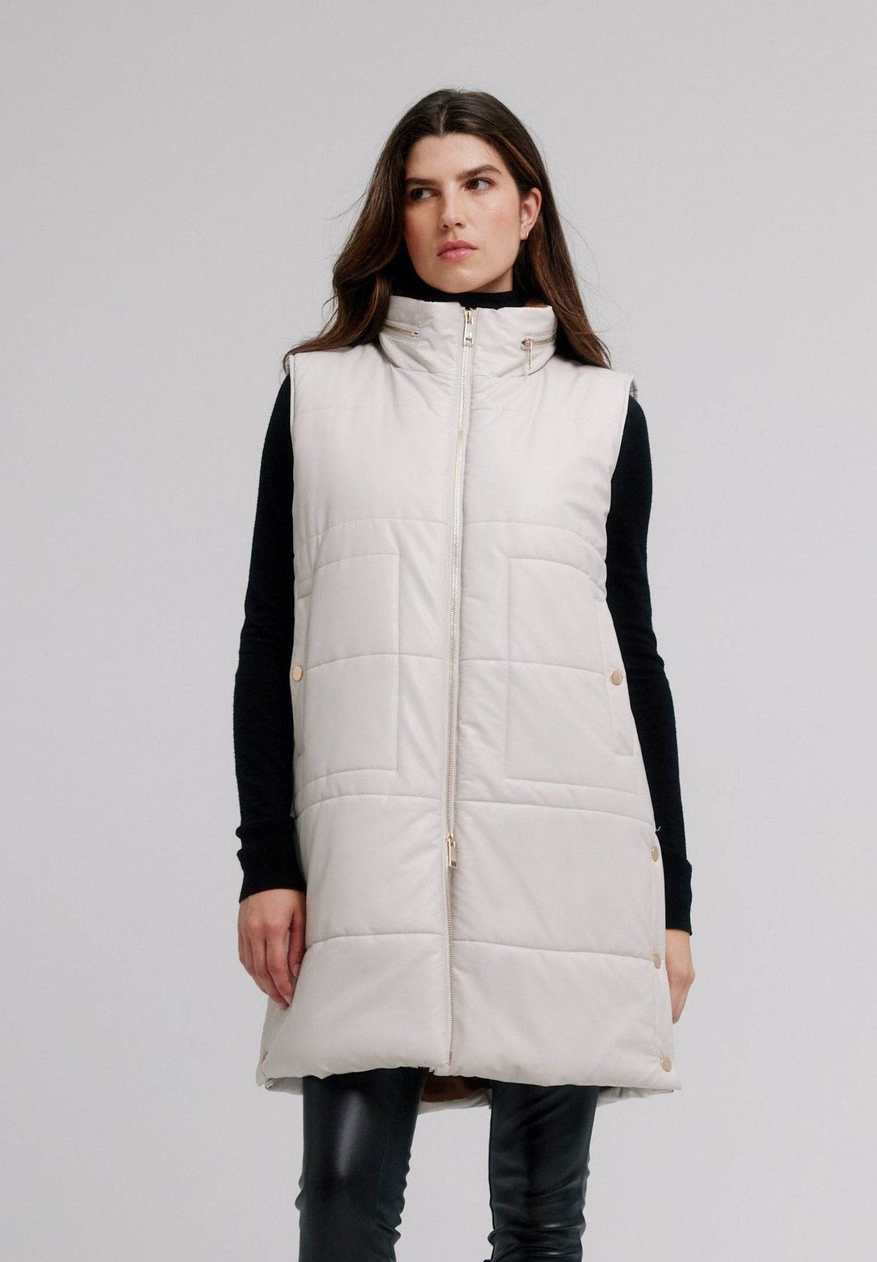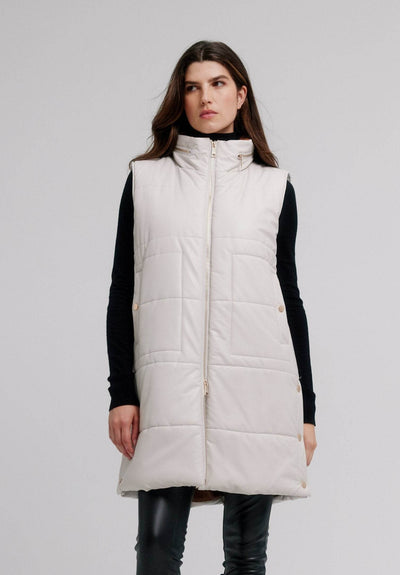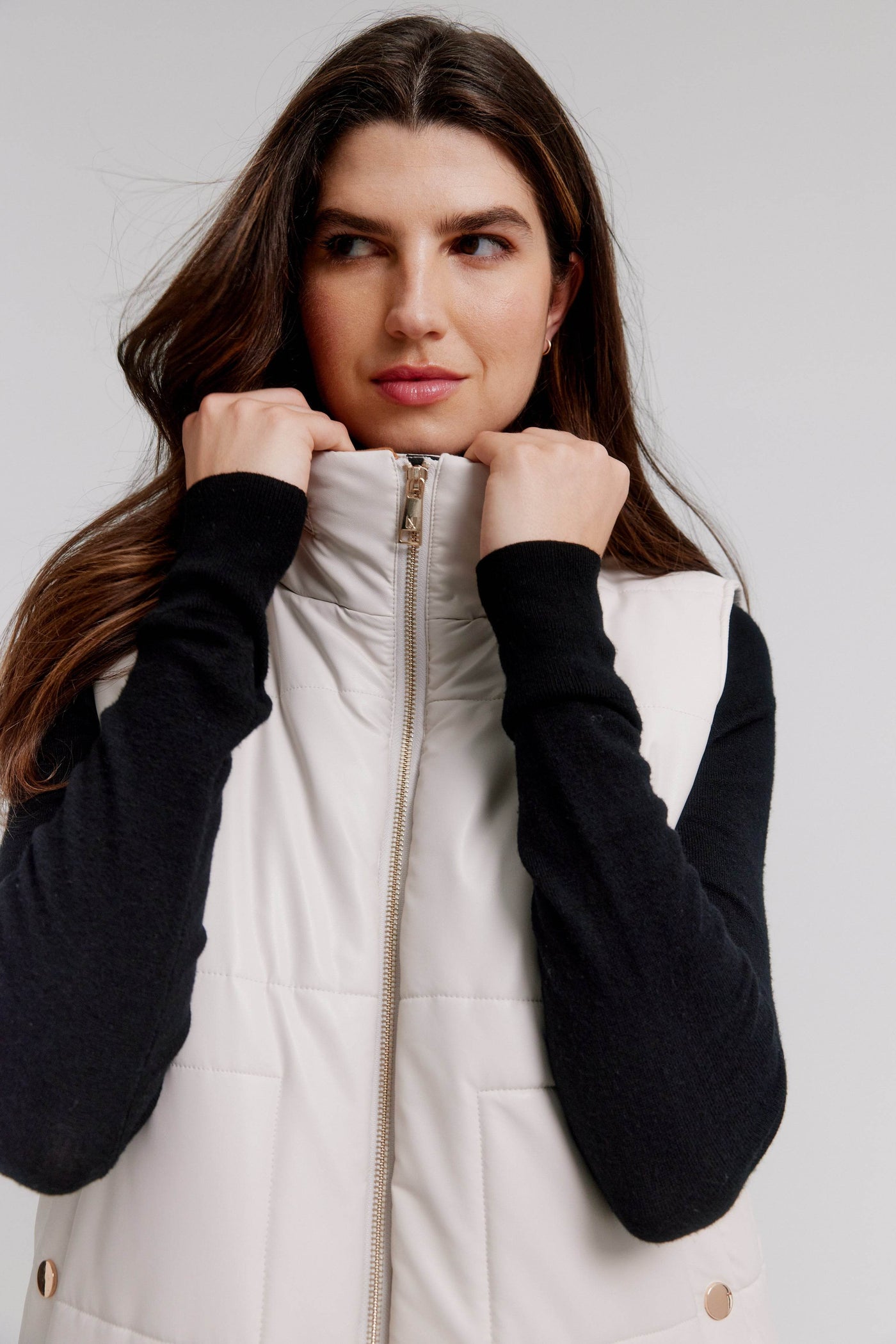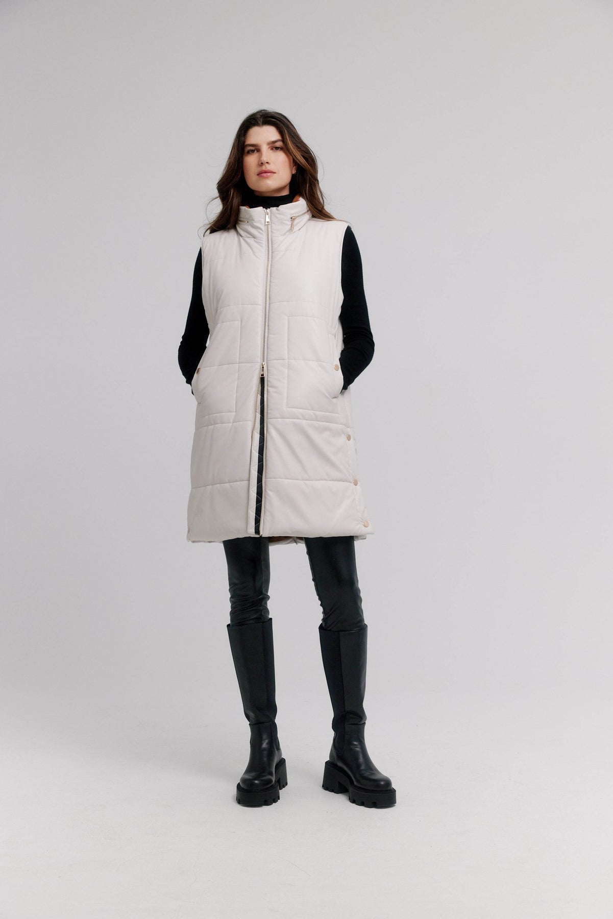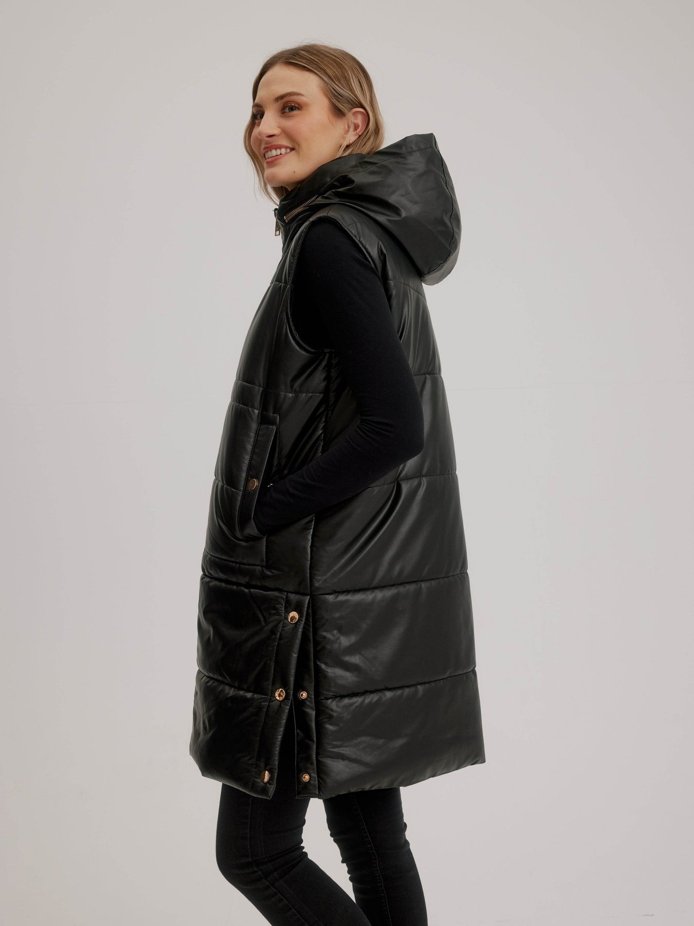 Look trendy and sophisticated with this vegan leather quilted vest featuring gold trim and side snaps. Crafted with a zipper closure and two side pockets, this vest is a must-have to complete your wardrobe. It has a 36" length for superior coverage and comfort.