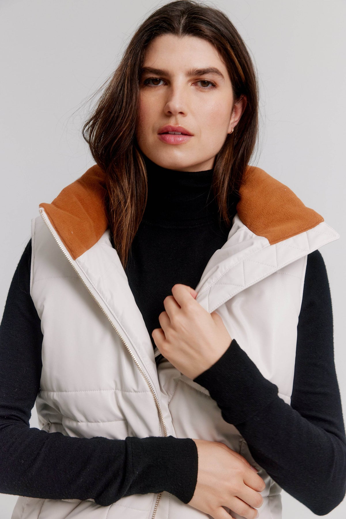 Vegan Leather Quilted Vest W/ Gold Trim & Side Snaps - Dream Pants