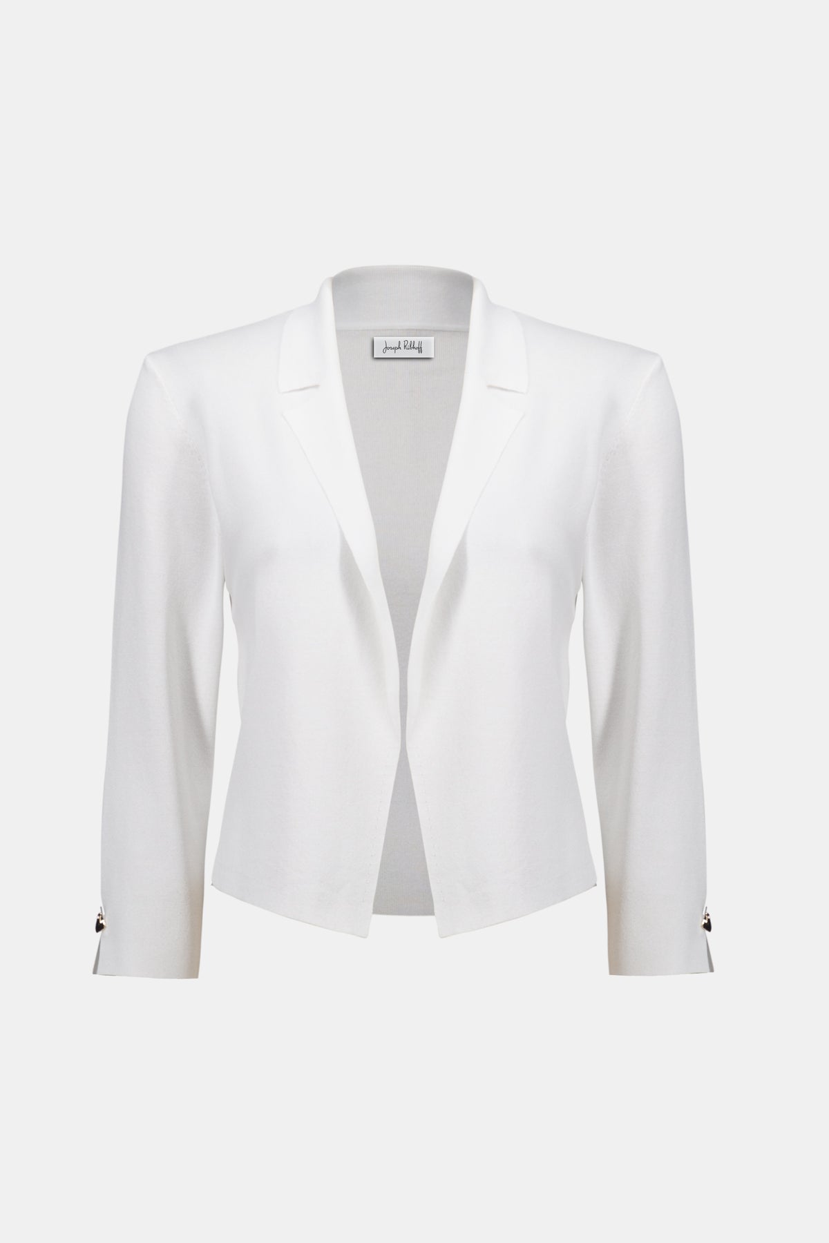 Elevate your wardrobe with this sophisticated open-front cardigan, expertly designed in a luxurious viscose and nylon blend. The refined needle stitch construction ensures durability and polish, while distinctive three-quarter sleeves with strategic slits and button embellishments deliver contemporary style. A tailored lapel collar completes the refined silhouette, making this piece an effortless layer for both professional and casual occasions.